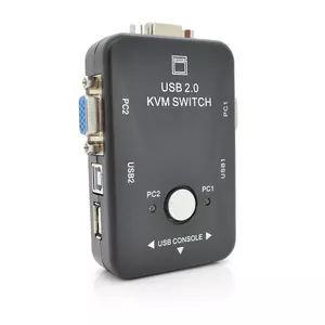 "2-портовий KVM-перемикач з USB" - це пристрій, який дозволяє керувати двома комп'ютерами за допомогою однієї клавіатури, відеомонітора та миші (KVM), використовуючи підключення USB. За допомогою цього пристрою користувач може легко перемикатися між різними комп'ютерами, необхідними для виконання різних завдань за допомогою загальних периферійних пристроїв.