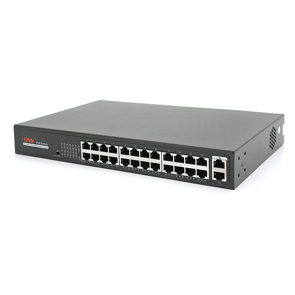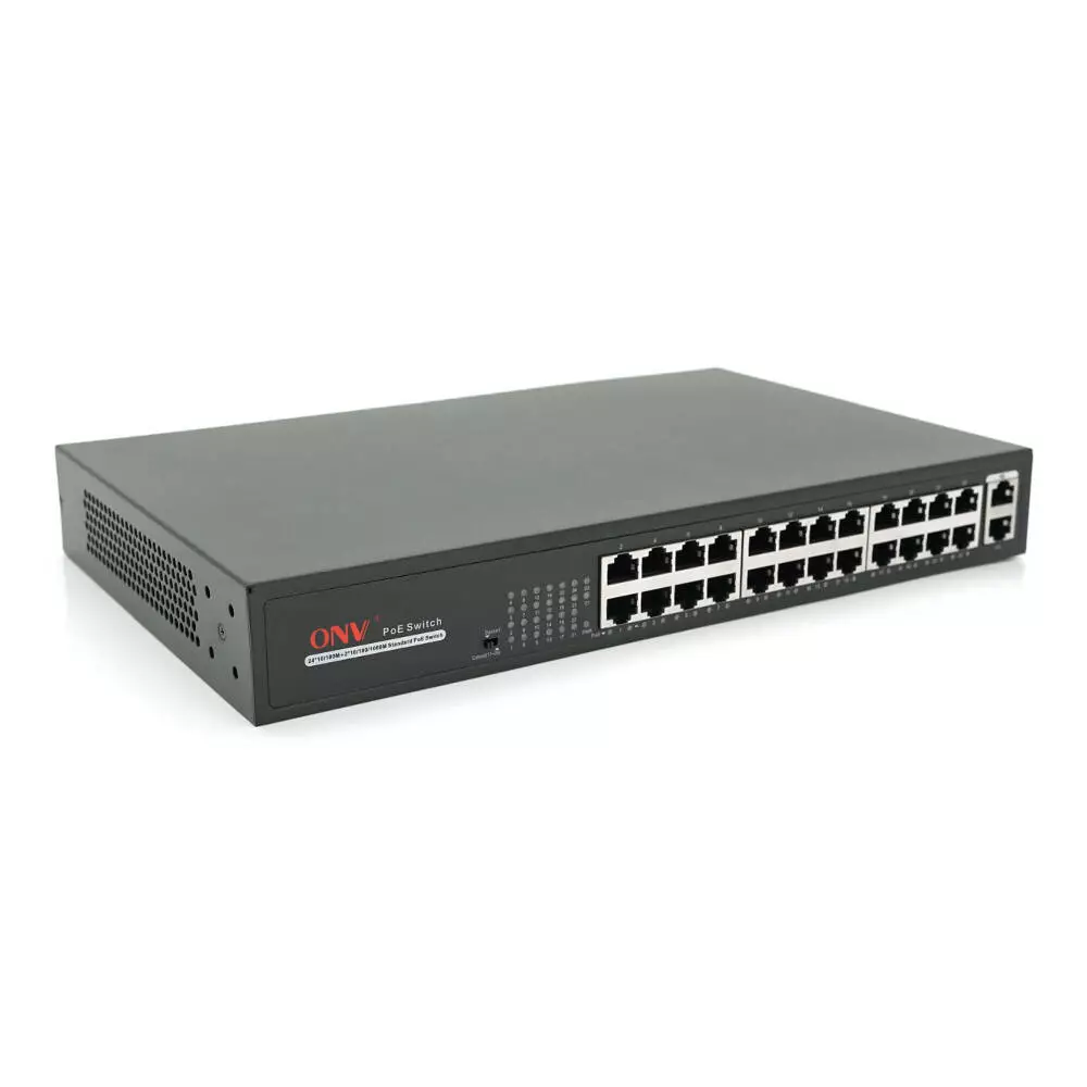24х портовий PoE комутатор ONV-H1024PLS 24 порти РоЕ 100 Мбіт + 2 Uplink 1000 Мбіт, до 250м, IEEE802.3af/at, загальна потужність 250Вт