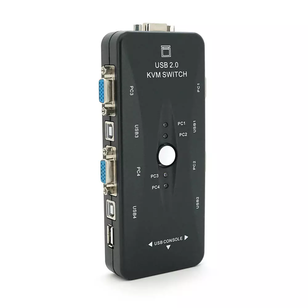 4-портовий KVM (Keyboard, Video, Mouse) свіч являє собою пристрій,