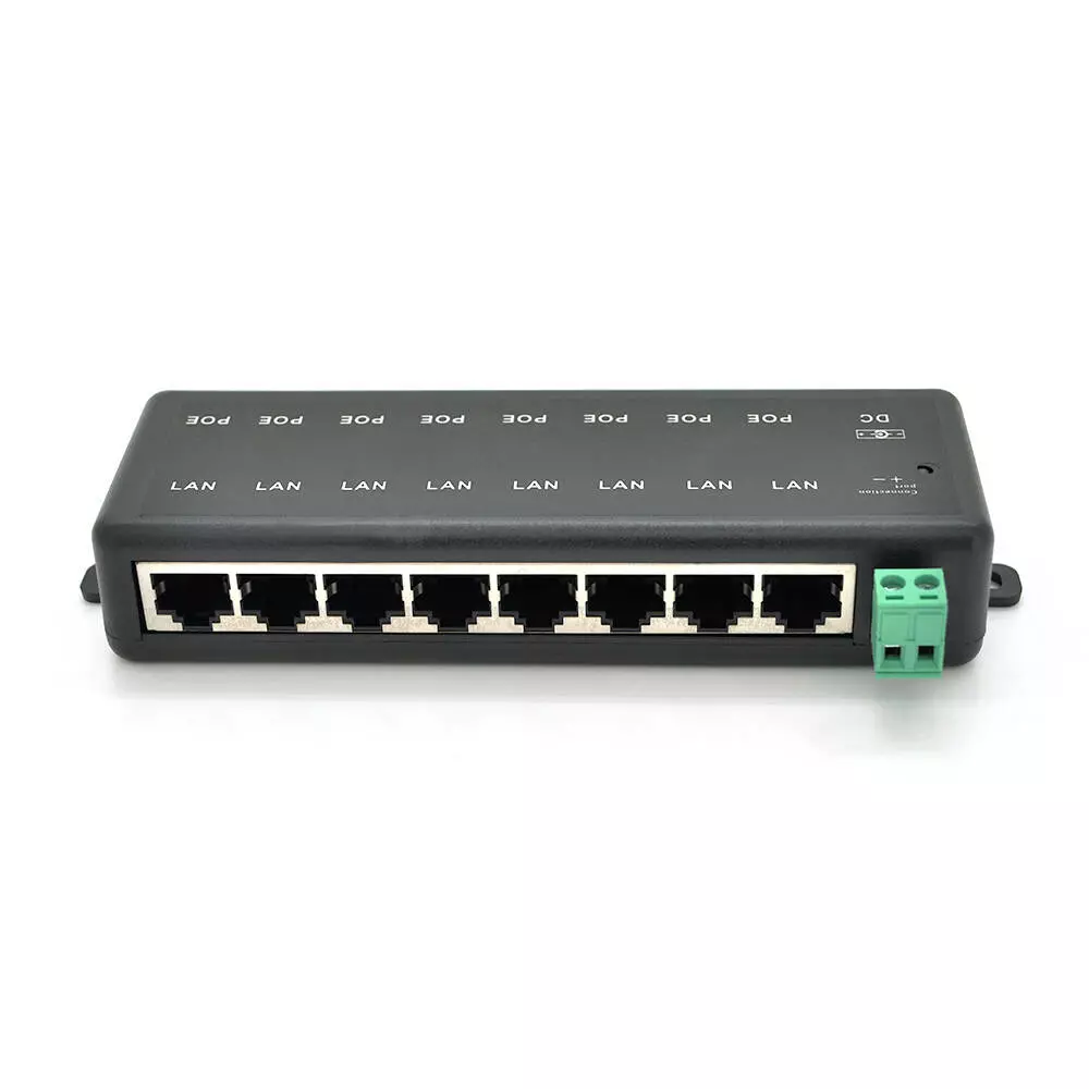 8-портовий POE-інжектор живлення, з 8xRJ45 портами Ethernet 10 / 100Мбит / с, IEEE802.3af / at, 12-48V, PIN45+/78-