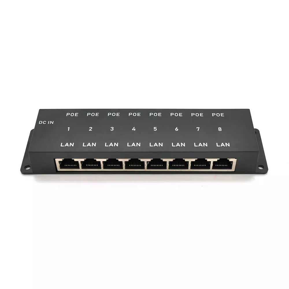 8-портовий POE-інжектор живлення, з 8xRJ45 портами Ethernet 10/100Мбіт / с, IEEE802.3af / at, 12-57V, PIN45 + / 78-