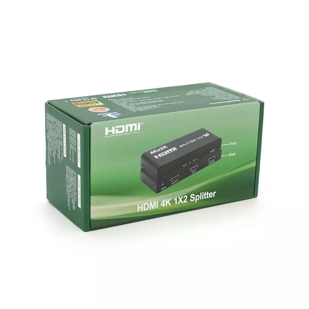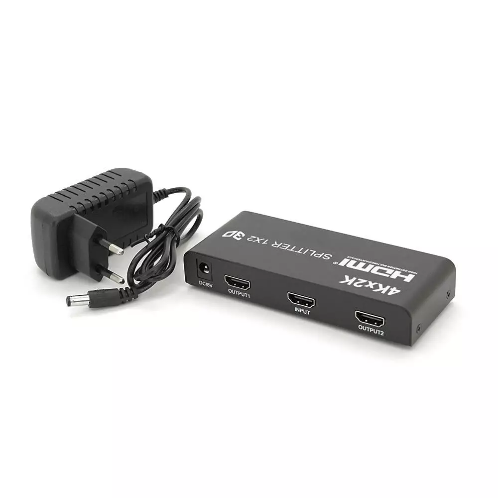 Активний HDMI сплітер 1=>2 порти, 4K, 2K, 3D, 1080Р, 1,4 версія, DC5V/2A, Metal, Box