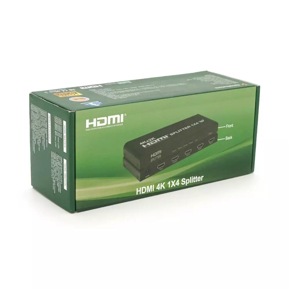 Активний HDMI сплітер 1=>4 порти, 4K, 2K, 3D, 1080Р, 1,4 версія, DC5V/2A, Metal, Box