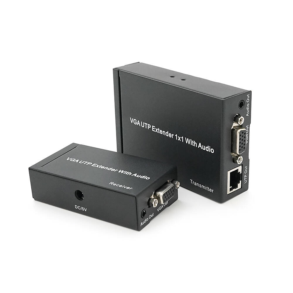 Активний подовжувач сигналу VGA призначений для збільшення довжини передачі сигналу VGA до 300 метрів по кручений парі Cat5e/6e. Він підтримує роздільну здатність 1080P і має чорний колір у коробці.