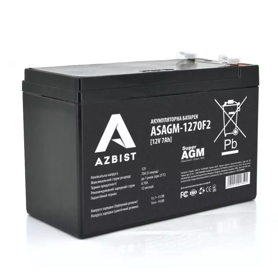 Акумулятор AZBIST Super AGM ASAGM-1270F2, Black Case, 12V 7.0Ah (151 х 65 х 94 (100)) Q10