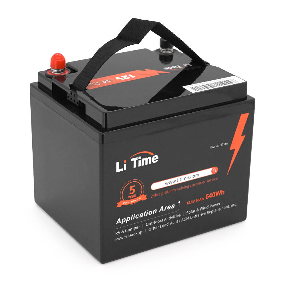 Акумуляторна батарея Li-TIME LiFePO4 12,8V 50Ah 640Wh(100/100A), заряд 14,4В/10А, (198 x 166 x 170мм), 5,24kg, Q1