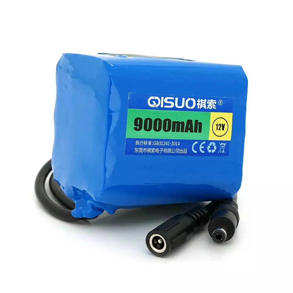Акумуляторна батарея літієва QiSuo 12V 9A з елементами Li-ion 18650, DC5.5x2.1, (61x57x68mm)