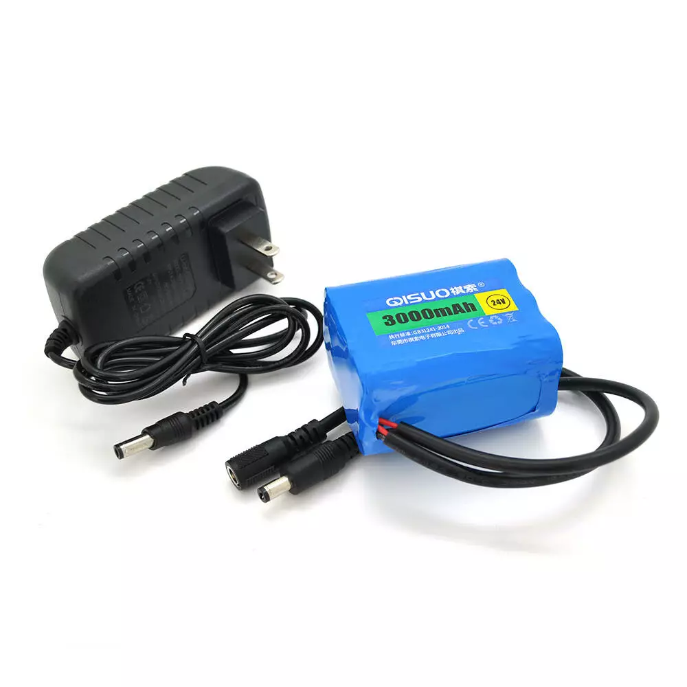 Акумуляторна батарея літієва QiSuo 24V 3A з елементами Li-ion 18650 + зарядний пристрій 25.2V1A, DC5.5x2.1, (56x38x70mm)