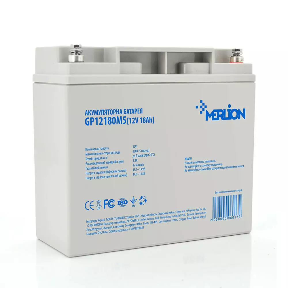 Акумуляторна батарея MERLION AGM GP12180M5 12 V 18 Ah ( 181 x 77 x 165 (167)), 4.65 k, Grey, Q4/192