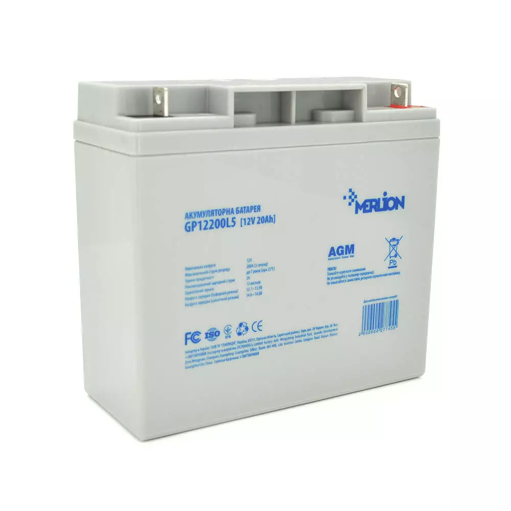 Акумуляторна батарея MERLION AGM GP12200L5 12 V 20 Ah ( 181 x 76 x 166 (168) ), 5,4 kg, Grey, Q4/192