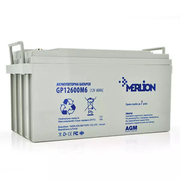 Акумуляторна батарея MERLION AGM GP12600M6 12 V 60 Ah ( 325 x 180 x 160 (165) ) Q1/48