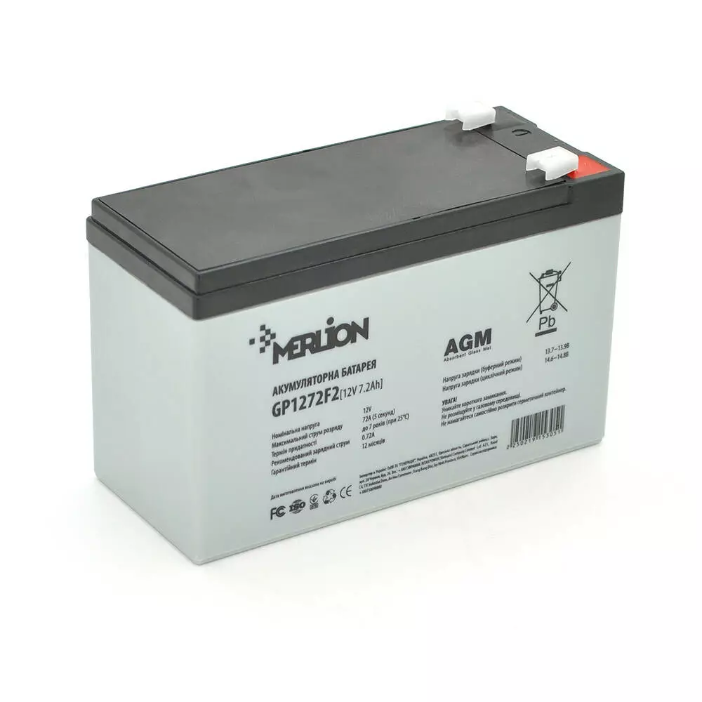 Акумуляторна батарея MERLION AGM GP1272F2 12 V 7,2 Ah (150 x 65 x 95 (100)) 2,0 кг Black/White Q10