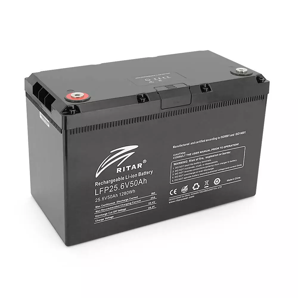 Акумуляторна батарея з bluetooth Ritar LiFePO4 25.6V 50Ah 1280Wh BMS25@8S (330 х 172 х 214 мм), 11kg Q1