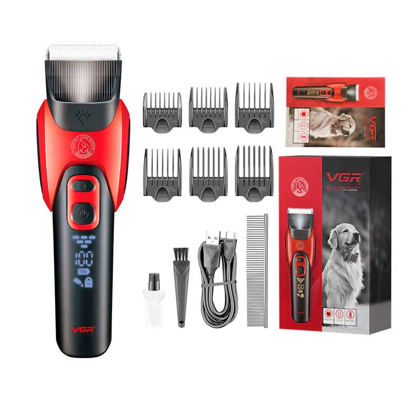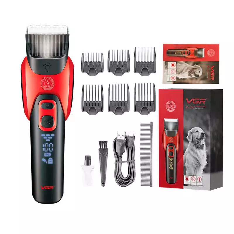 Акумуляторна машинка для стрижки тварин VGR V-208, 6 насадок, LED display, Box
