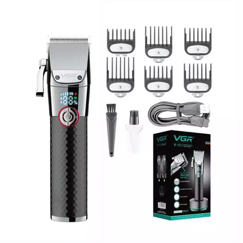 Акумуляторна машинка для стрижки VGR V-682, 6 насадок, IPX7, LED display, Box