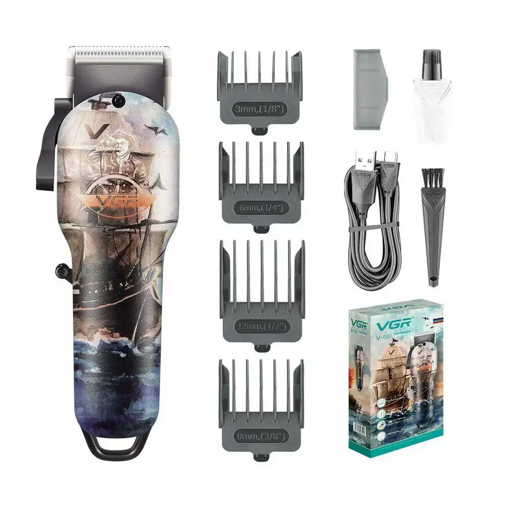 Акумуляторна машинка для стрижки VGR V-690, 4 насадки, Box
