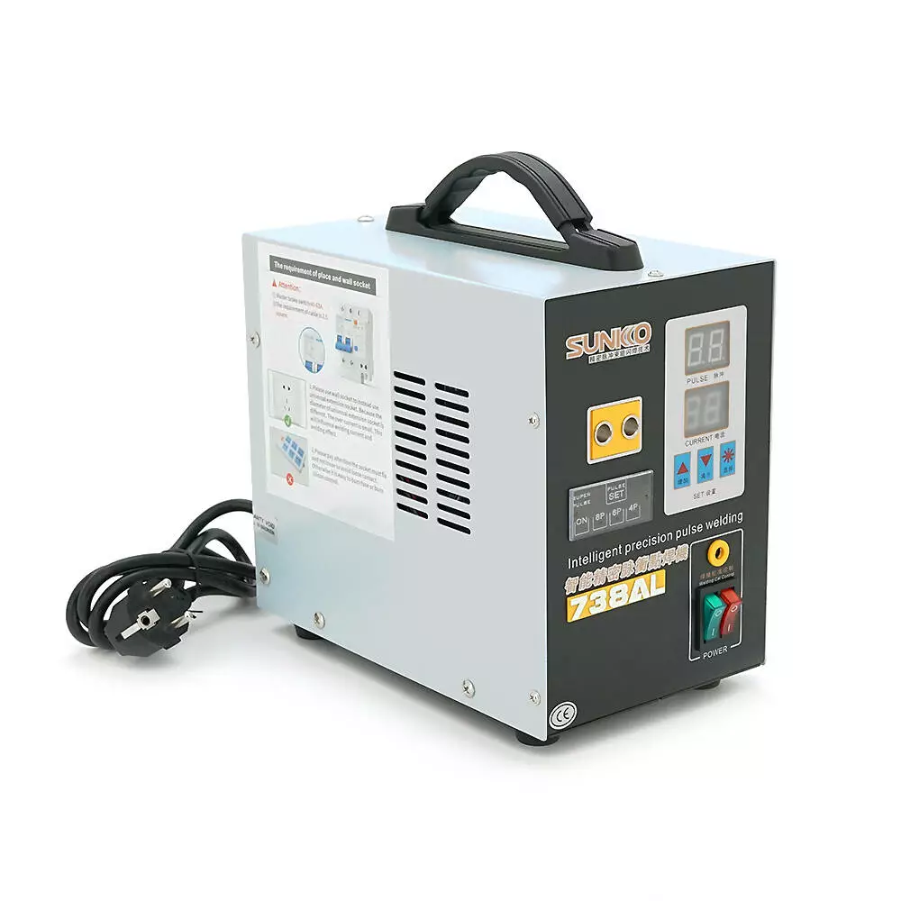 Апарат точкового зварювання конденсаторний SUNKKO 738AL, Ni-Cd, Ni-MH, Li-Ion, стрічка 0,2-0,3 мм, струм 50-900А, 73LA, 70V, 220V, 140x245x200мм, t=2-20ms, 3.6kW