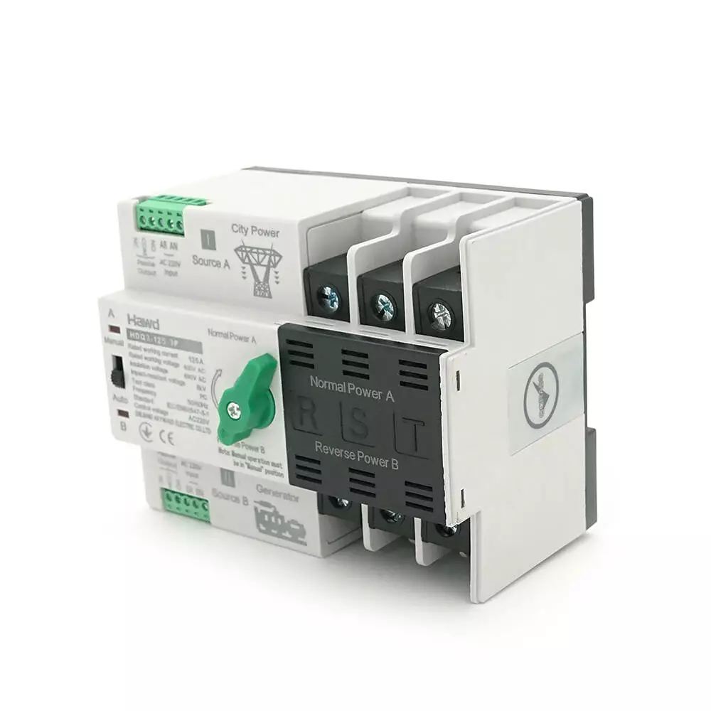 Автомат введення резерву (АВР) чотириполюсний HDQ3-125E/3P, 400V/125A на DIN-рейку для генераторів
