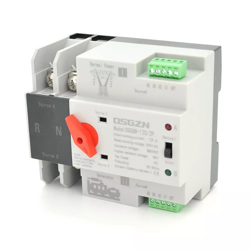 Автомат введення резерву (АВР) двополюсний OSGQ8-125/2P, 230V/125A на DIN-рейку для генераторів