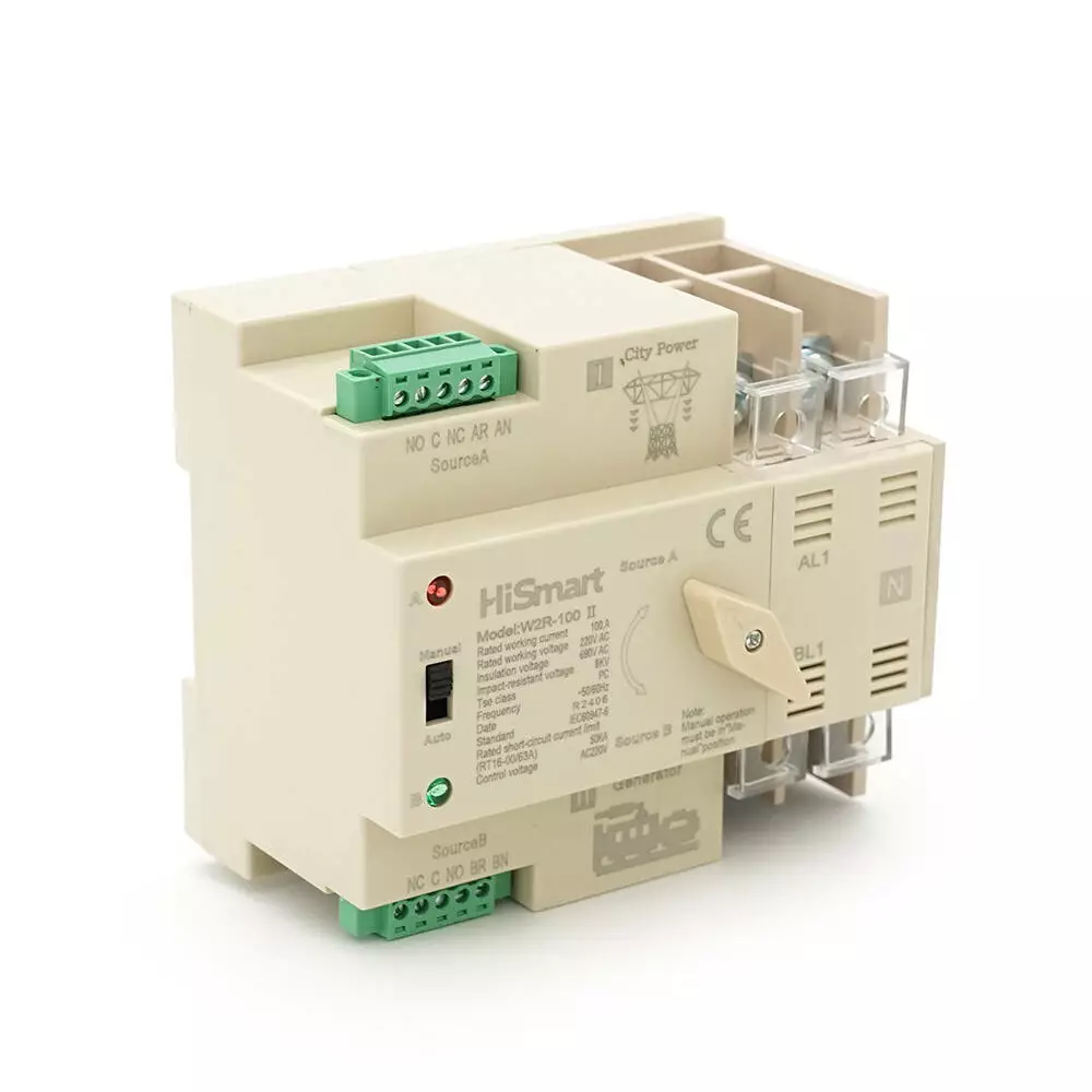 Автоматичний перемикач навантаження НіSmart W2R-2P сеть-генератор,однофазний, двохлюсний ,220В ,100А
