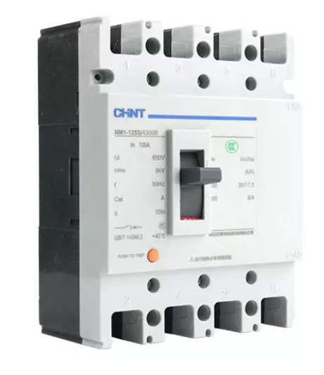 Автоматичний вимикач змінного струму CHINT NM1-125S/4300-125А 4P, 380 В. 125A. 8КА/400В; 10КА/800В. 155*120*68mm