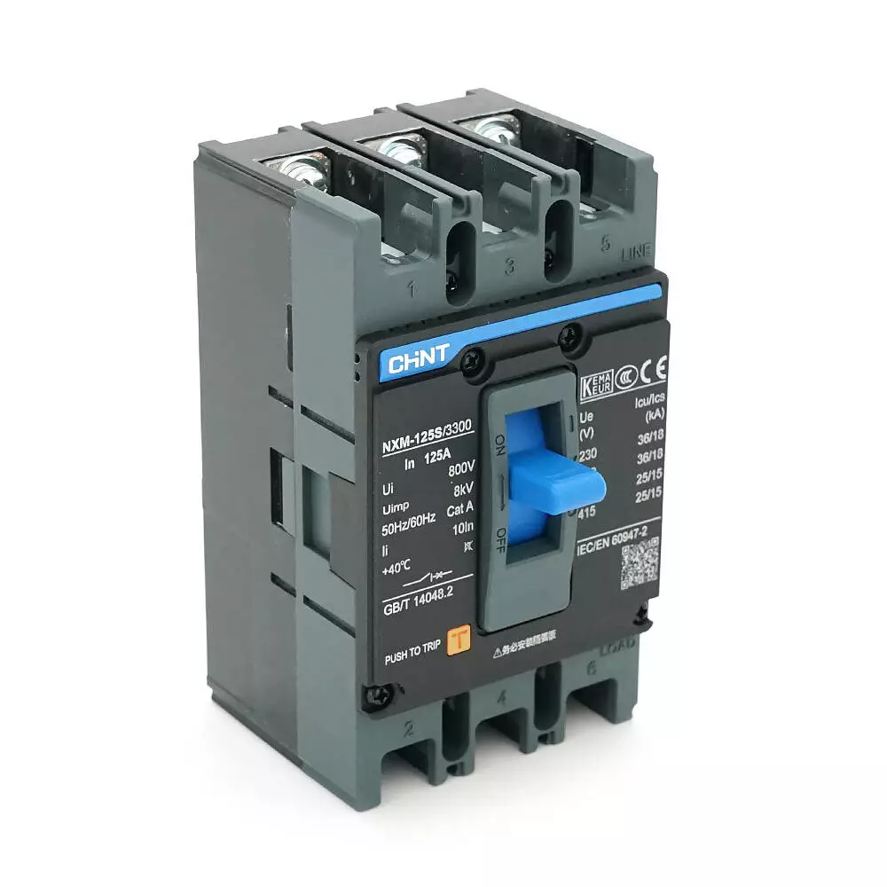 Автоматичний вимикач змінного струму CHINT NXM-125S-3300-125A, 3P, 125A, 415V, 25/15kA, 8kV