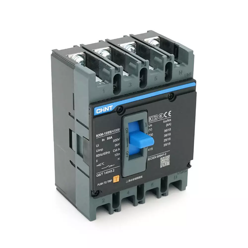 Автоматичний вимикач змінного струму CHINT NXM-125S-4300B-80A, 4P, 80A, 415V, 25/15kA, 8kV