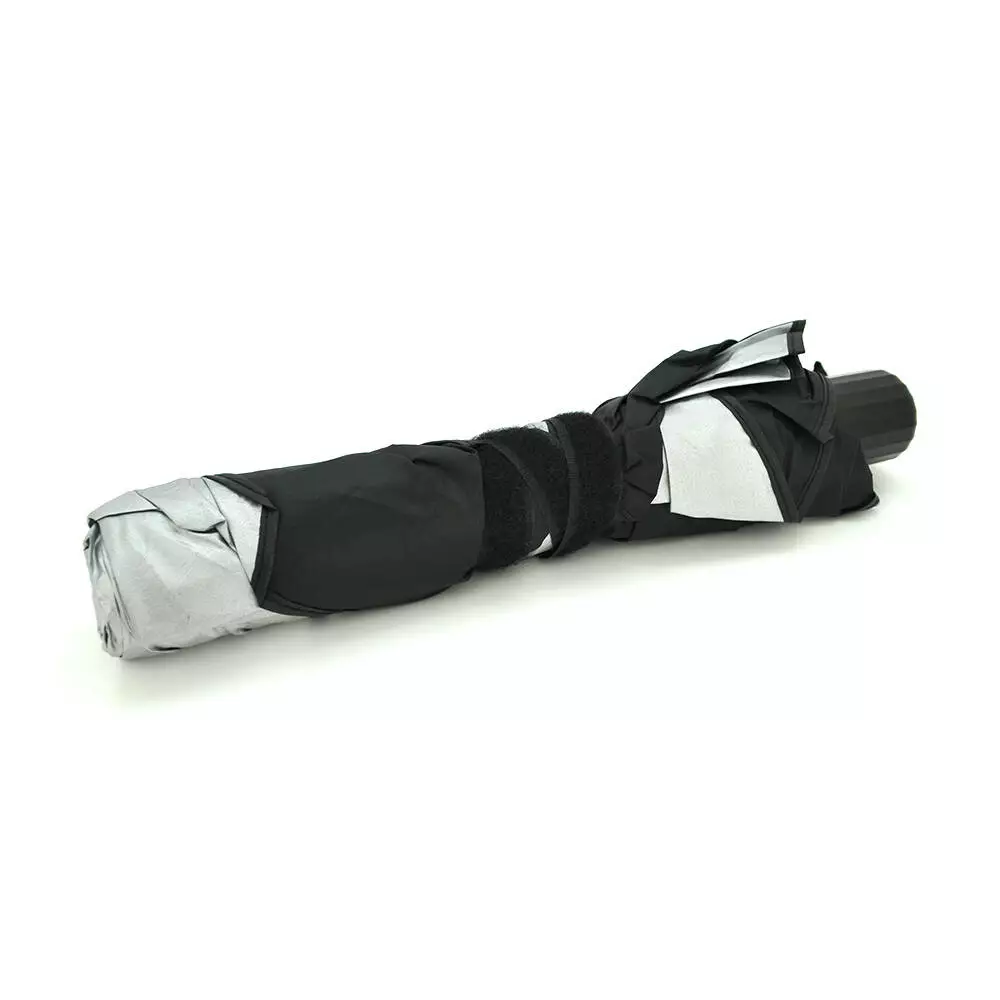 Внутрішня частина парасольки – чорна, що затемнює салон при його використанні, зовнішня – срібляста, сприяє відбитку сонячних променів, тим самим значно знижуючи температуру повітря в салоні.