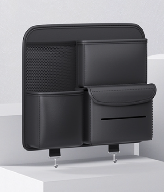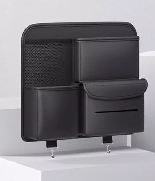 Автомобільний органайзер CABULE на передні сидіння, 35x28х7.5см, кріплення до сидінь ременями, 4 відділення, PV-шкіра, чорний