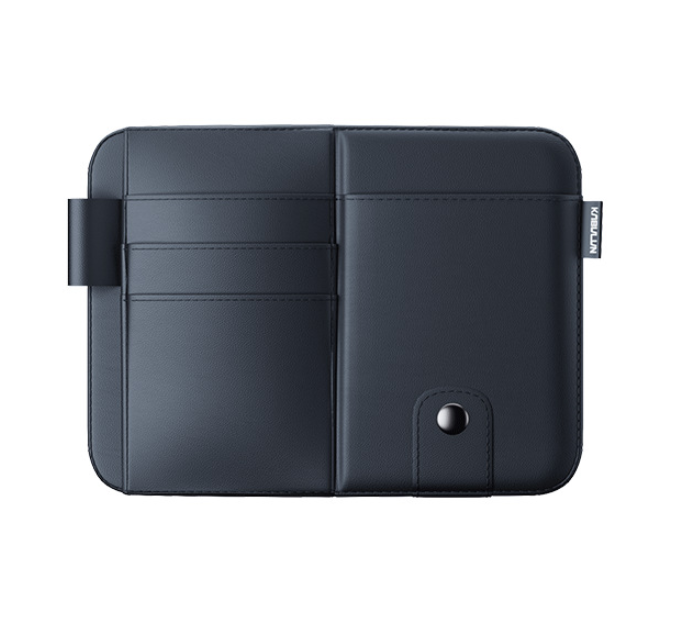 Автоорганайзер CABULE на сонцезахисний козирок, кріплення до ременів, 4 відділення + місця для ручки та окулярів. Матеріал PV-шкіра. 21x15.3см. Чорний