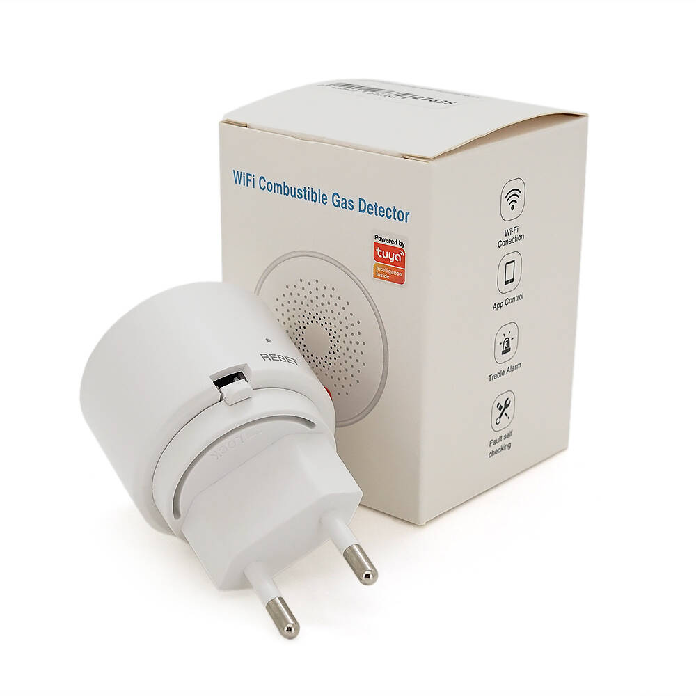 Розумний бездротовий датчик виявлення витоку природного газу (метану) це одна з найкращих моделей на ринку для запобігання витоку природного газу та можливих трагічних наслідків такого витоку. Може працювати автономно, але для всіх функцій необхідна наявність мережі WIFI 2.4ГГц для підключення до мобільної програми. Датчик працює з TUYA. Програма дозволяє користувачеві отримувати повідомлення про спрацювання датчика, а також вжити термінових заходів для вирішення проблеми. Датчик може використовуватися як "самостійний" пристрій, а також в комплексі з іншими пристроями системи "Розумний дім". Сигналізатор газу працює від мережі 80-250 Вольт і тому не потребує додаткових елементів живлення. Пристрій потрібно лише включити у звичайну розетку, у потенційного місця витоку газу, наприклад, у газової плити. Встановлювати датчик краще в радіусі 1-3 м від можливого витоку і не ближче ніж 30 см від стелі в приміщенні.