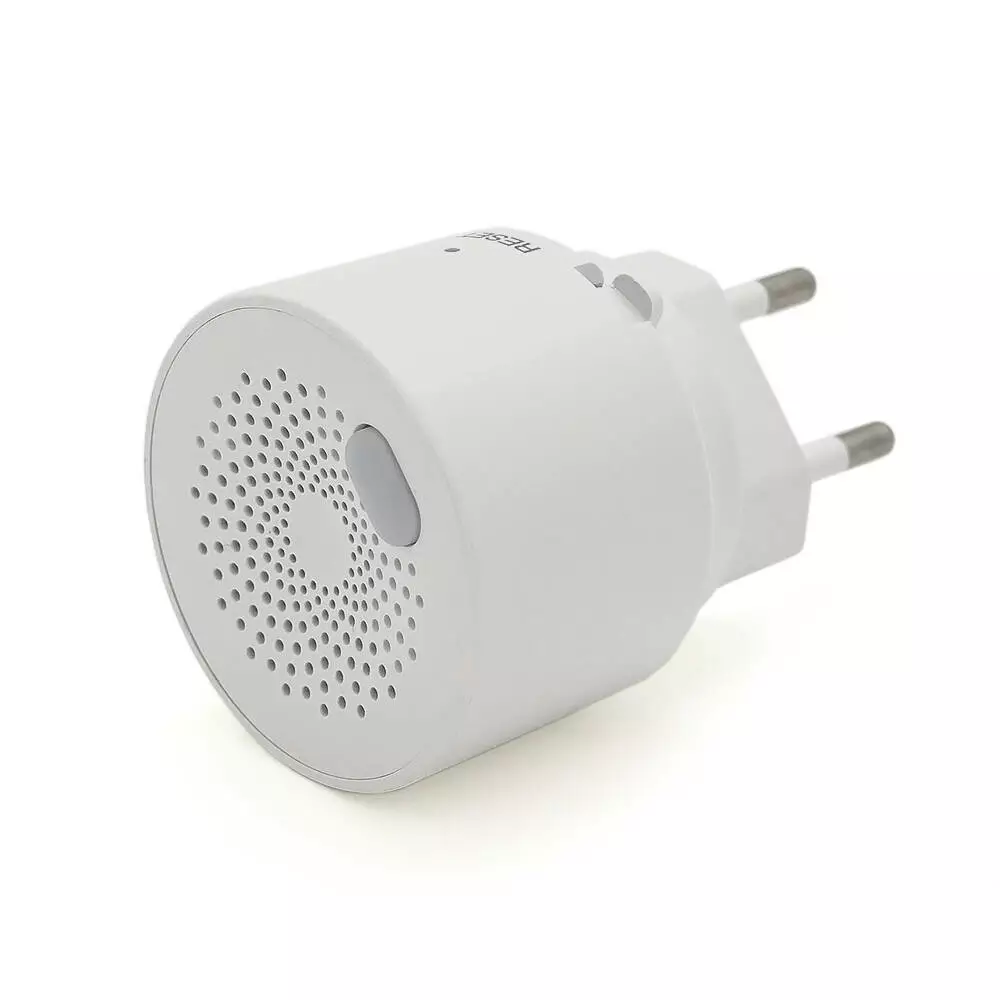 • Під час детекції газу видає звуковий сигнал, відправляє push-повідомлення на смартфон і подає живлення на клапан маніпулятора для блокування подачі газу (якщо такий встановлено).