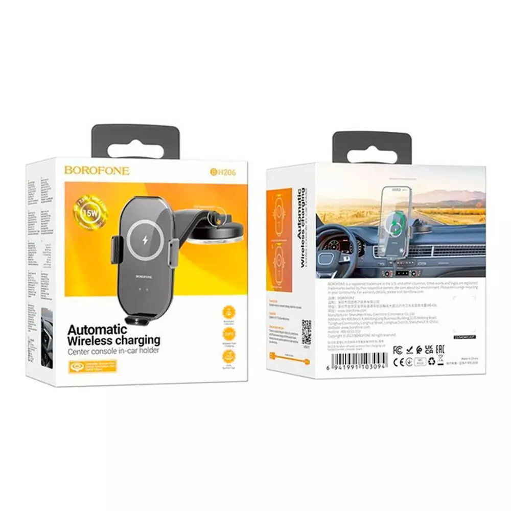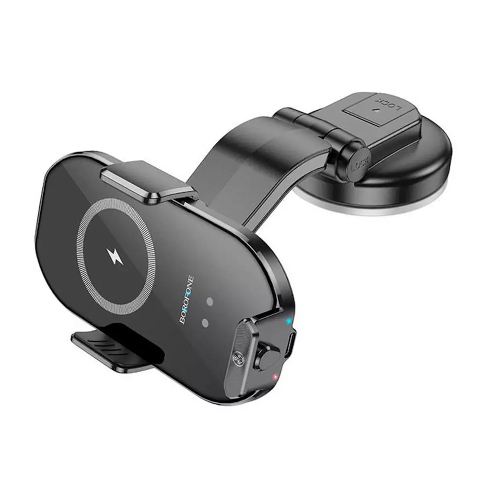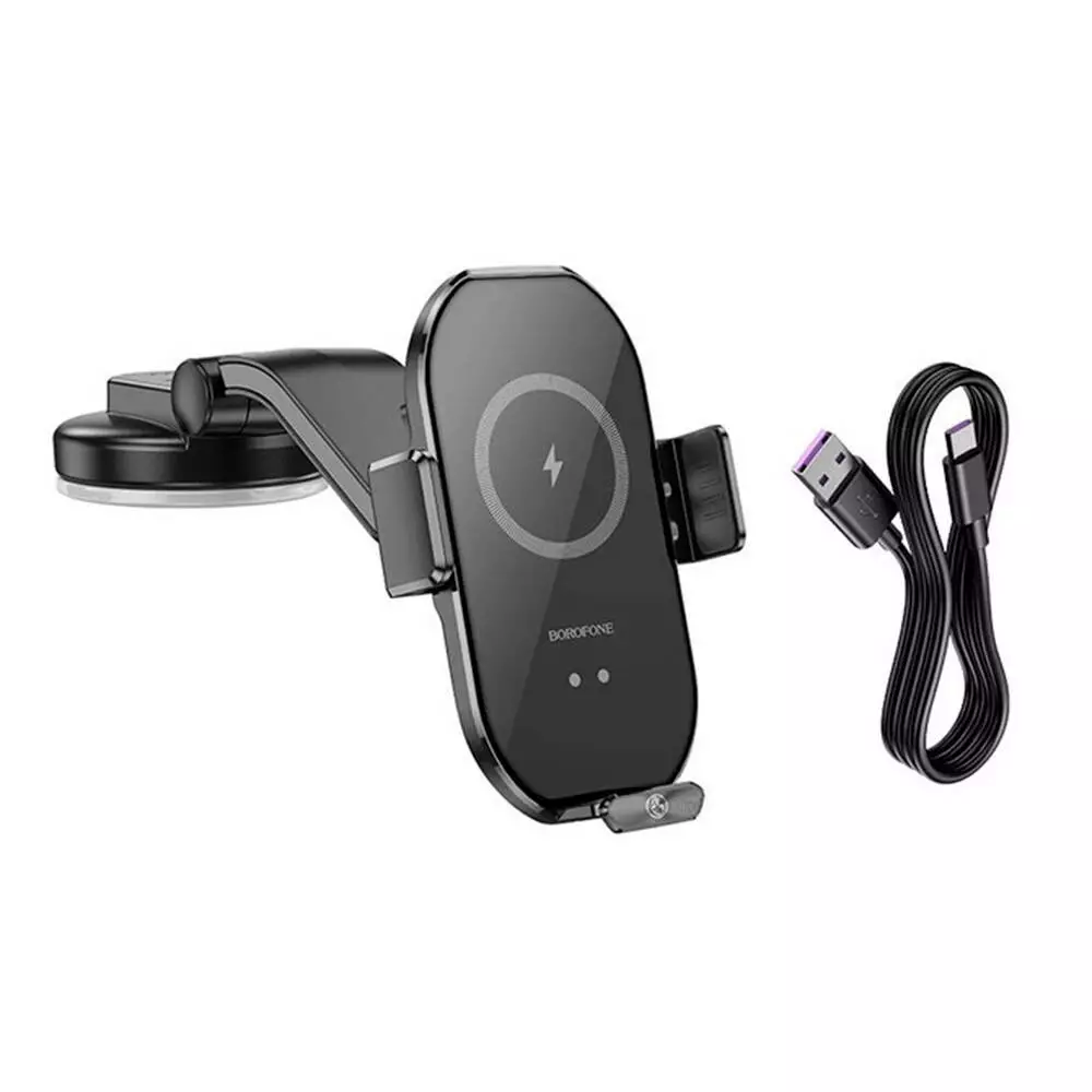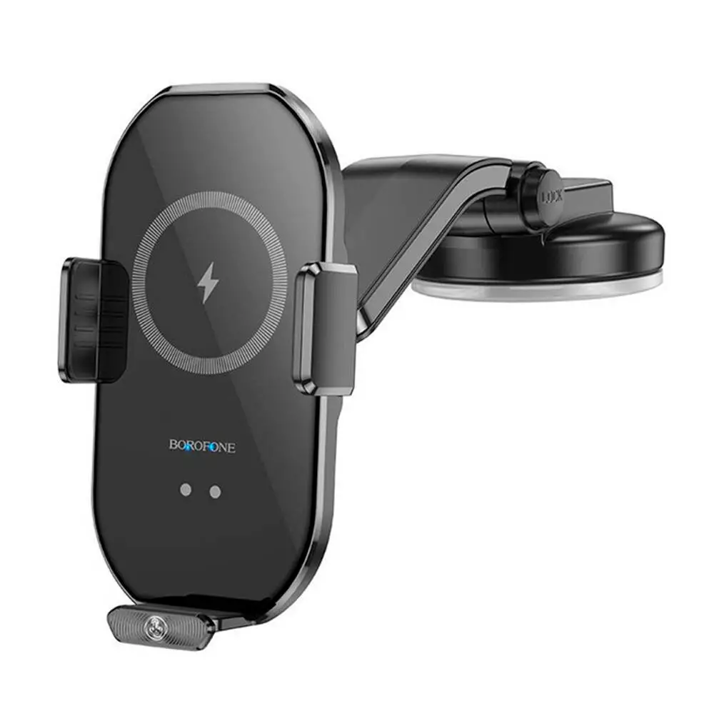 Автотримач BOROFONE BH206+ Wireless Charging 15W, кріплення на торпеду, клямка 50-90мм, Black, Box