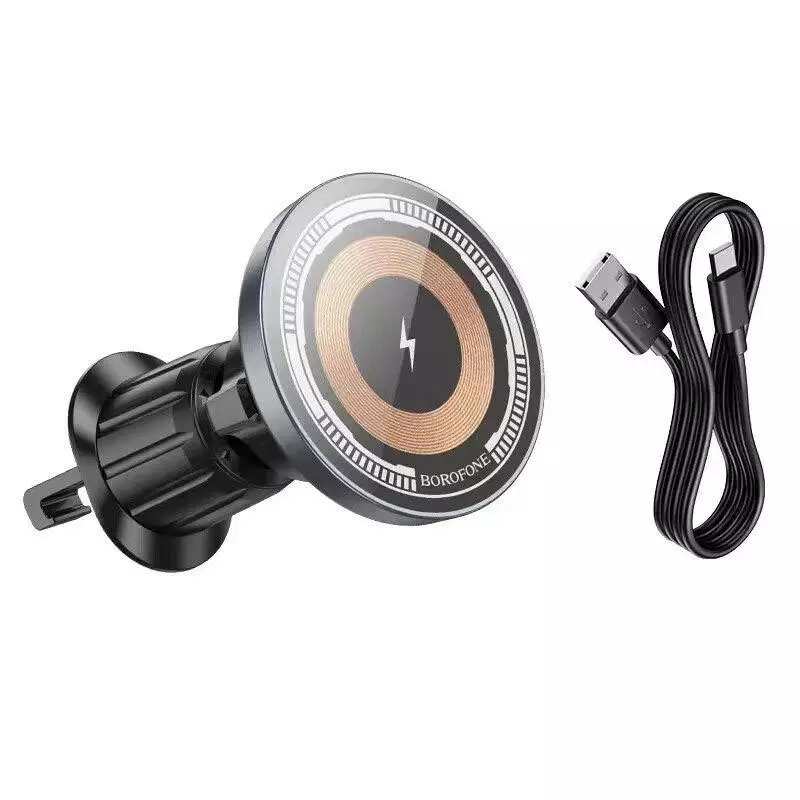 Автотримач BOROFONE BH211+ Wireless Charging 15W, кріплення на решітку, магніт, Black, Box