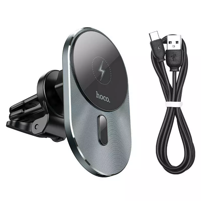 Автотримач HOCO CA91 + Wireless Charging 15W, кріплення на решітку, Type-C, Gray, Box