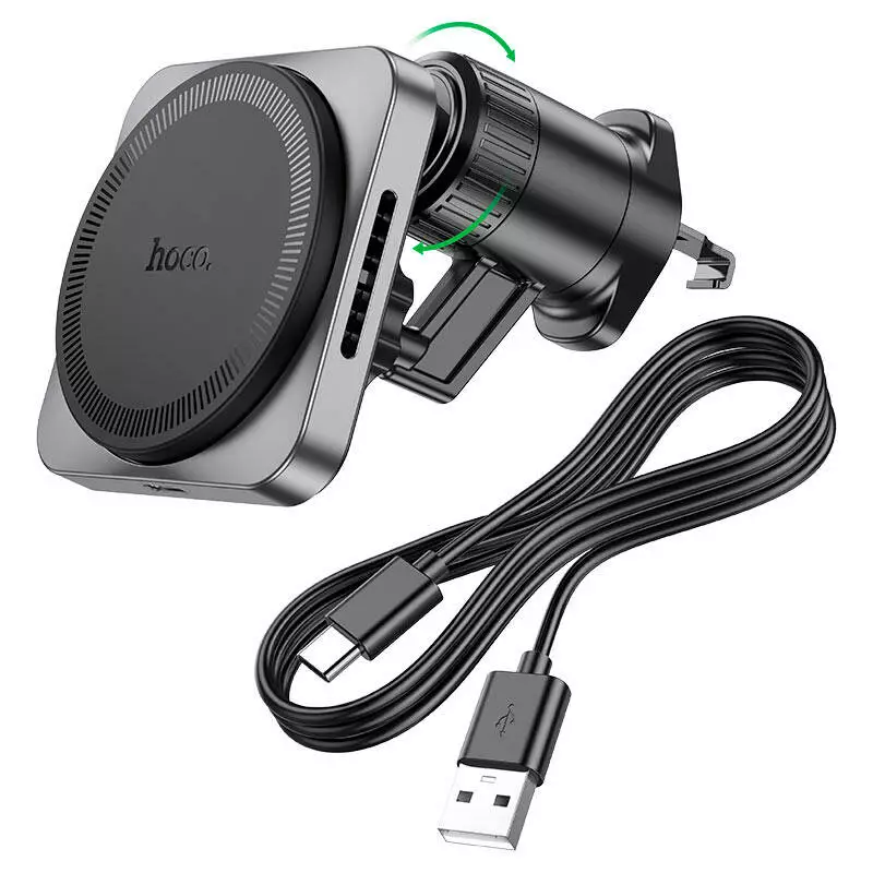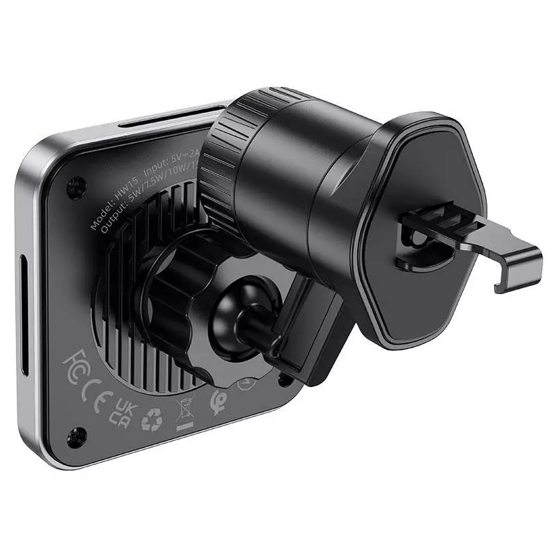 Автотримач HOCO HW15+ Wireless Charging 15W, кріплення на решітку, магніт, Black, Box