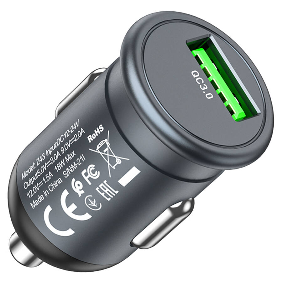 АЗУ 12-24V HOCO Z43, 1xUSB 3.0, 18W, Black, Box