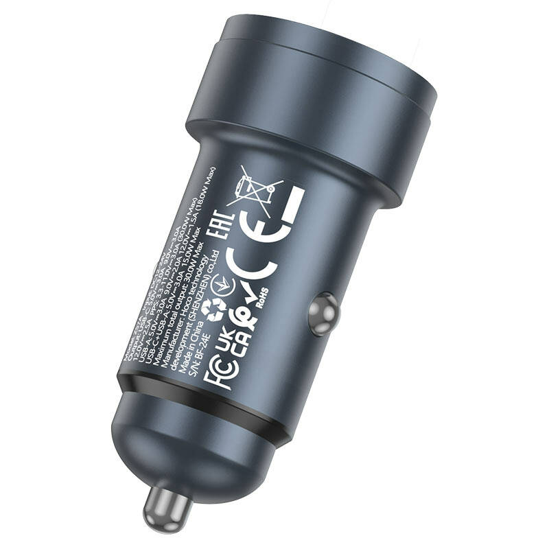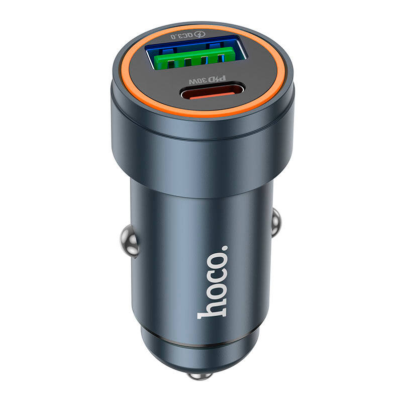АЗУ 12-24V HOCO Z57A, USB 3.0+USB-C, 3A, PD30W+QC3.0, Black, Box