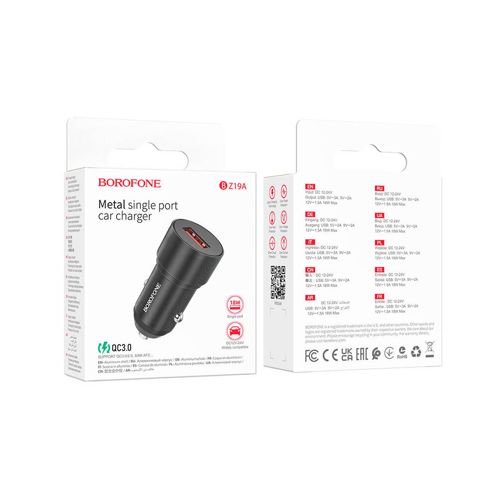 АЗУ BOROFONE BZ19A 1хUSB, 2.4A, QC3.0, Black, Box