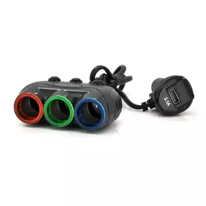 Опис: АЗУ розгалужувач + вольтметр Olesson 1633, 12V-3 * 12V + USB,