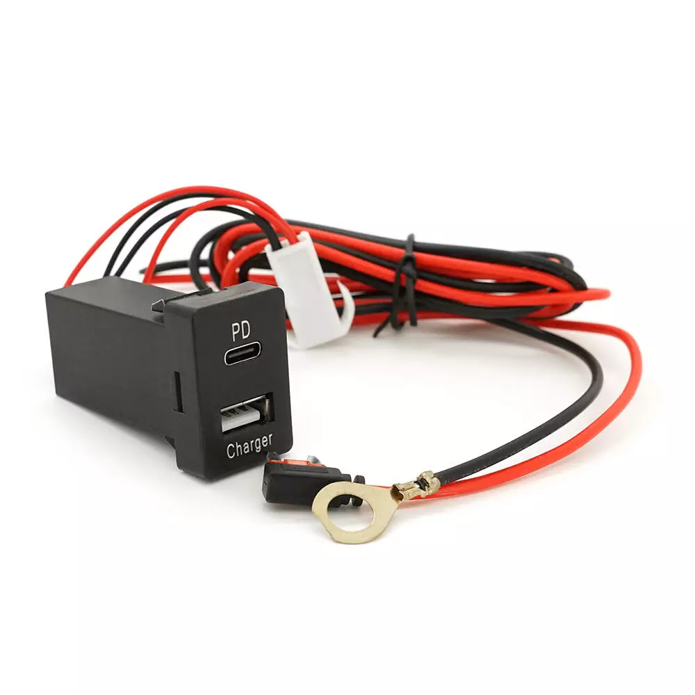 АЗУ врізне 38W-L01T03-С, PD+QC, Type-C: 20W, USB: 18W, комплект дротів з роз'ємами, 33x22х58mm, Black