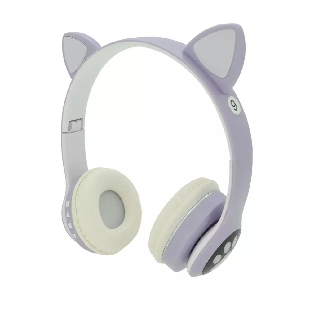 Бездротові навушники Bluetooth Cat Ear VZV-23M Led, Purple - це стильні навушники з кітоподібними вухами і освітленням LED. Вони дозволяють слухати музику без проводів та пропонують унікальний дизайн для поціновувачів моди та музики.