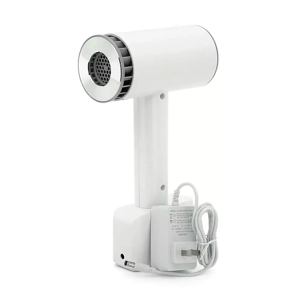 Бездротовий фен Voltronic, 2600mAh, 2 режими, зарядка від 220V + microUSB, 145х70х199, White + перехідник