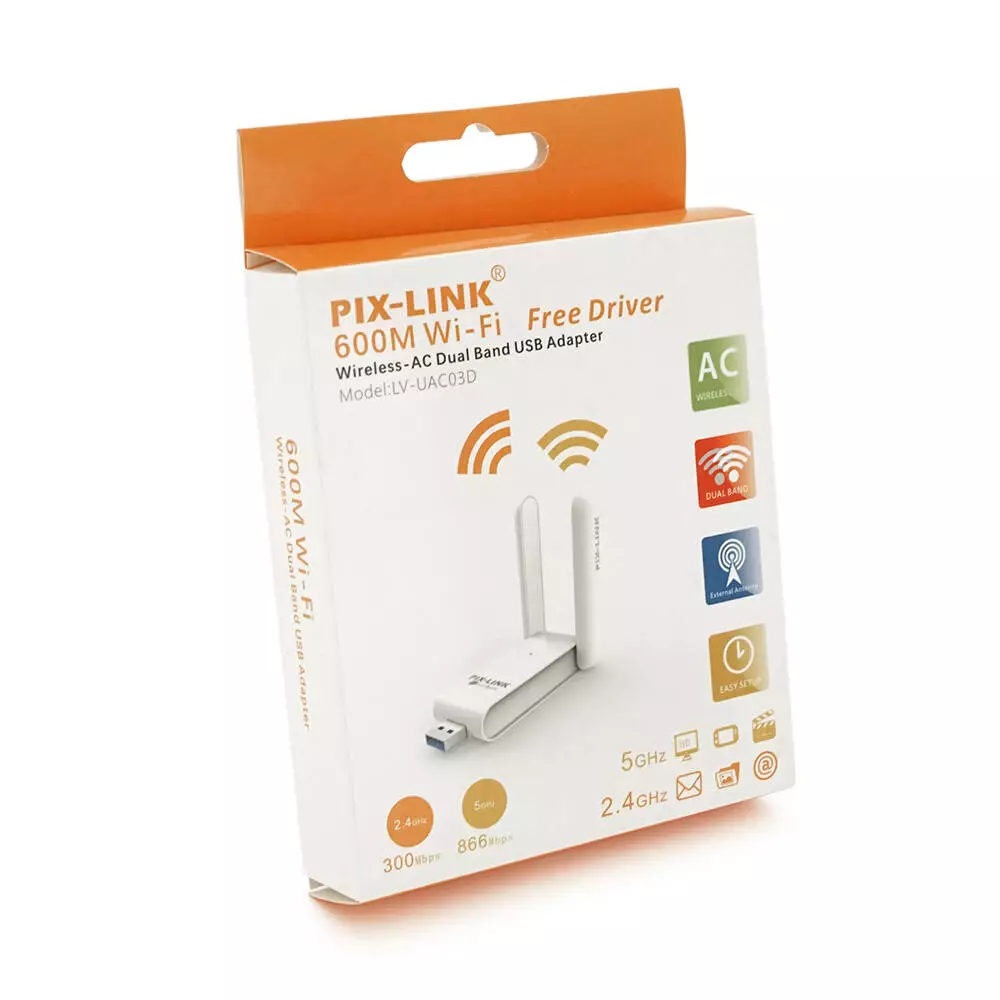 Бездротовий мережевий адаптер Wi-Fi-USB Merlion LV-UAC03D,RTL8811CU, з 2-ма антенами 10см,802.11bgn ,600MB,2.4 GHz,Blister