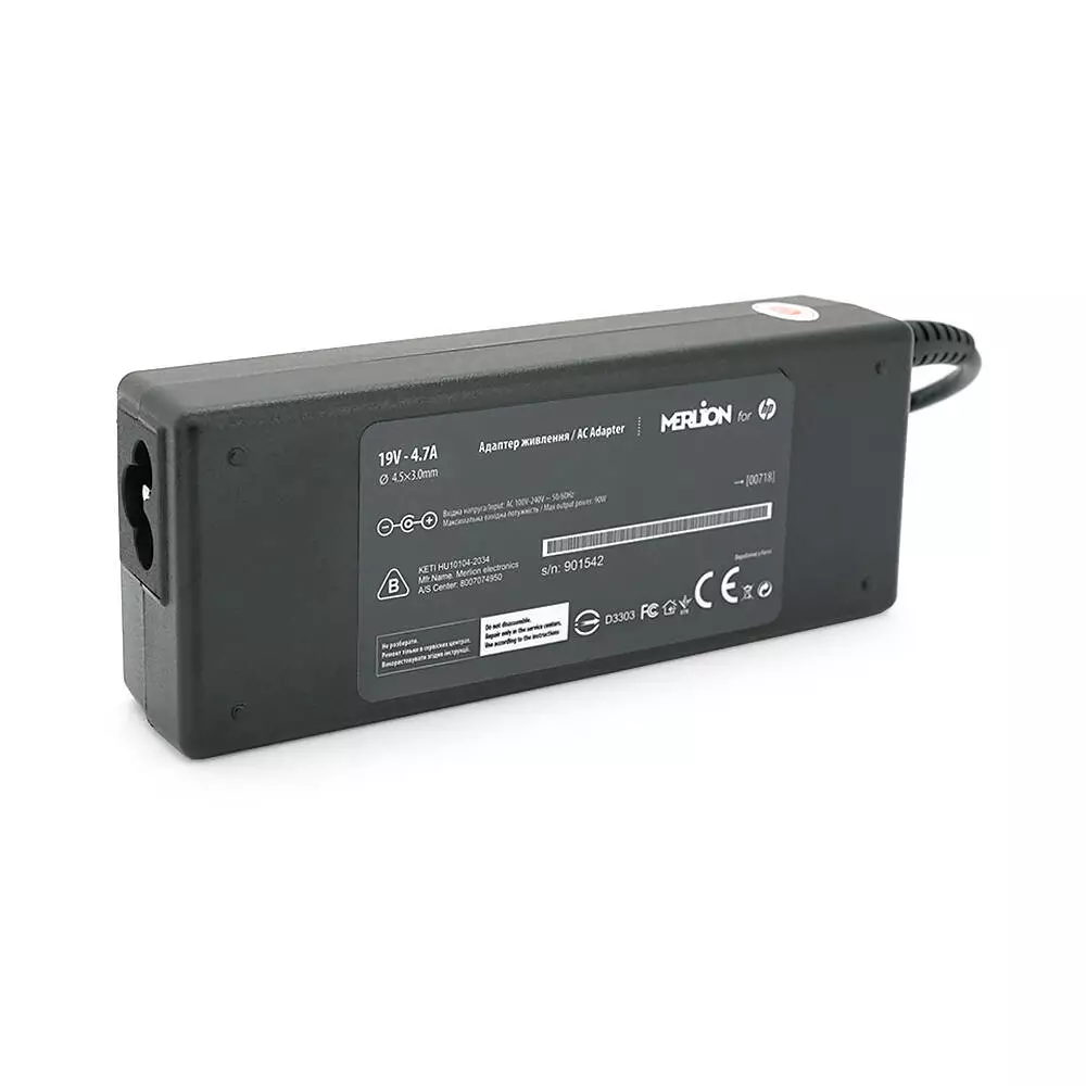 Блок живлення MERLION для ноутбука HP 19V 4.74A (90 Вт) штекер 4.5*3.0мм, довжина 0,9м + кабель живлення