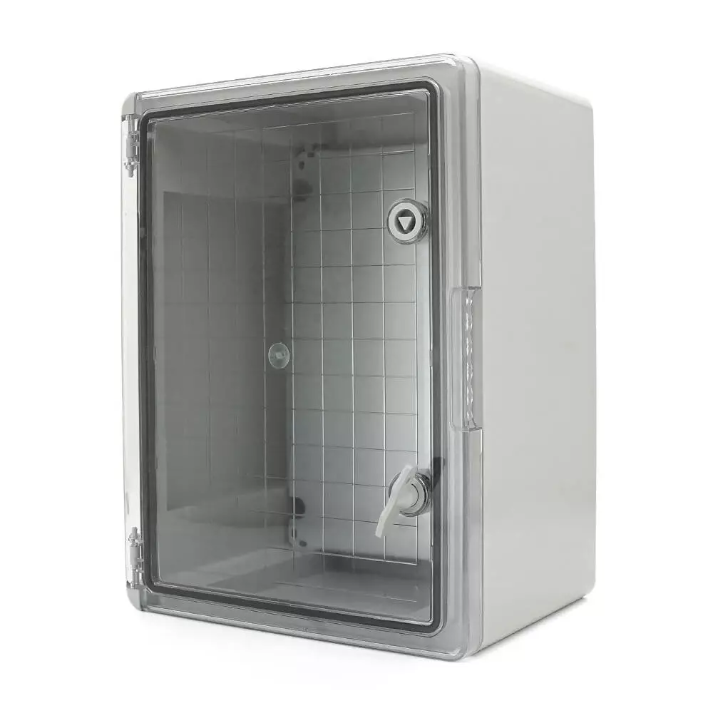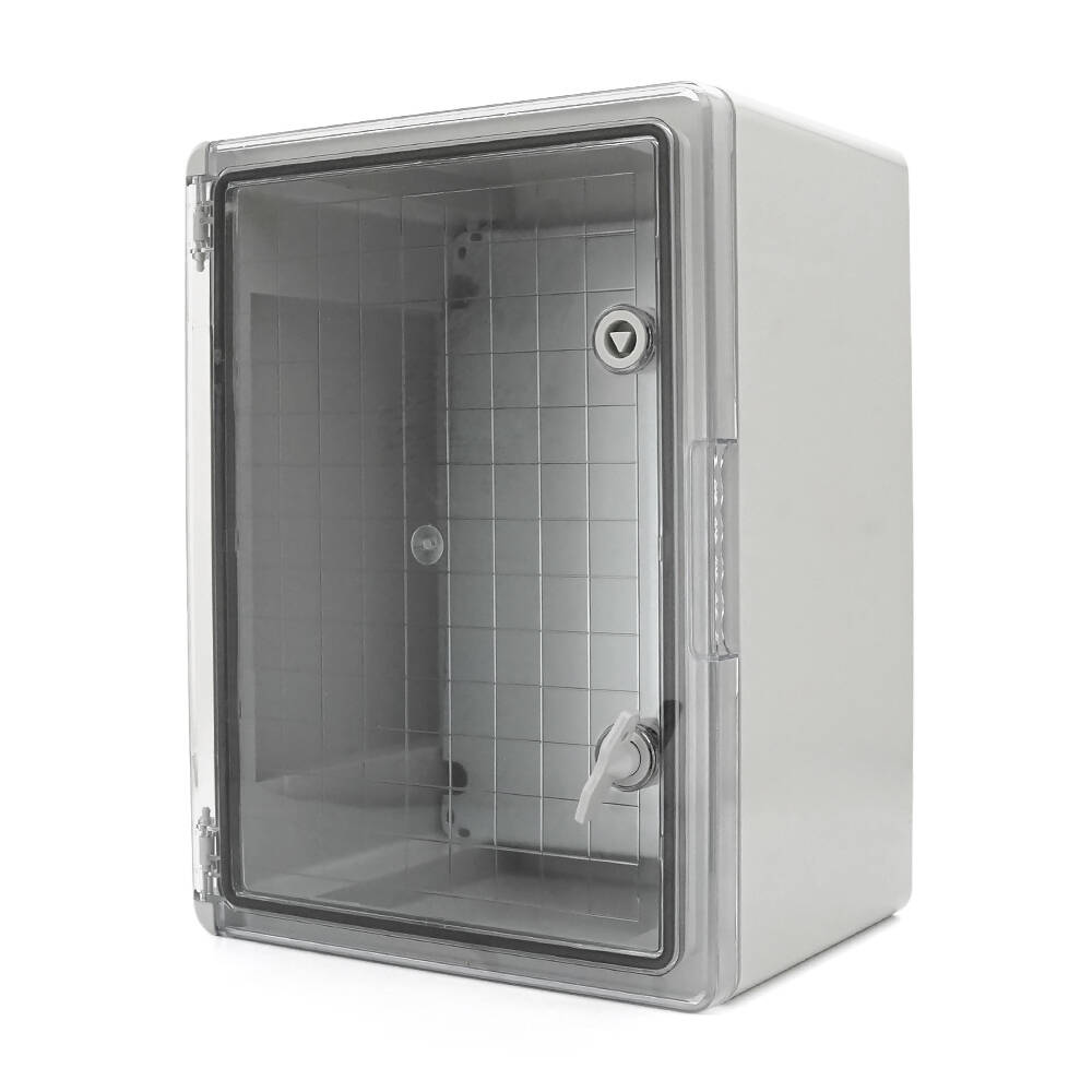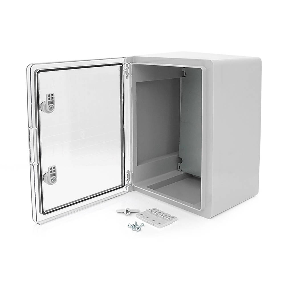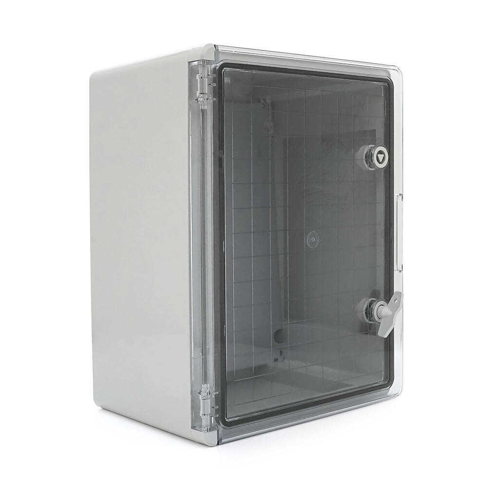 Бокс міцний з ABS пластику з монтажною панеллю 400х300х220, з прозорими дверцятами, IP65