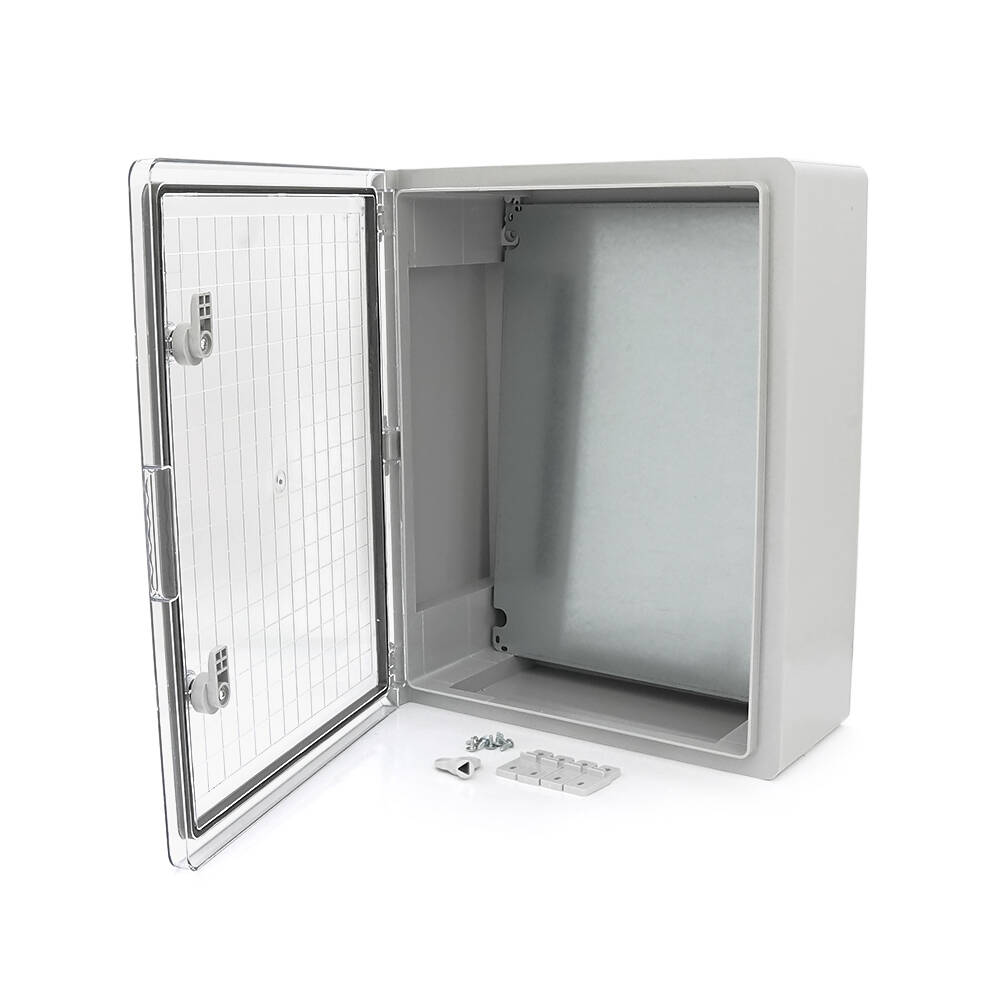 Бокс міцний з ABS пластику з монтажною панеллю 500х400х180, з прозорими дверцятами, IP65