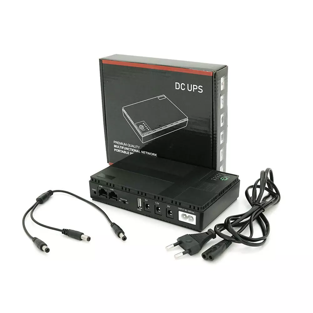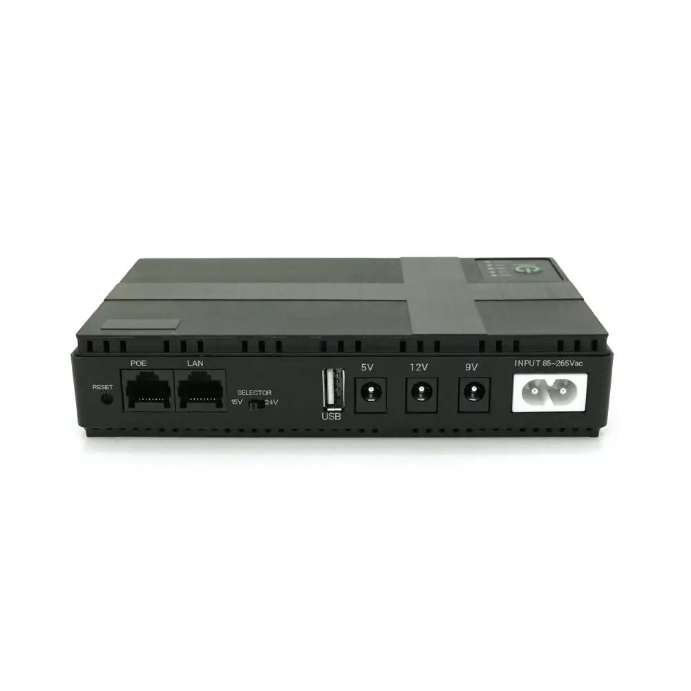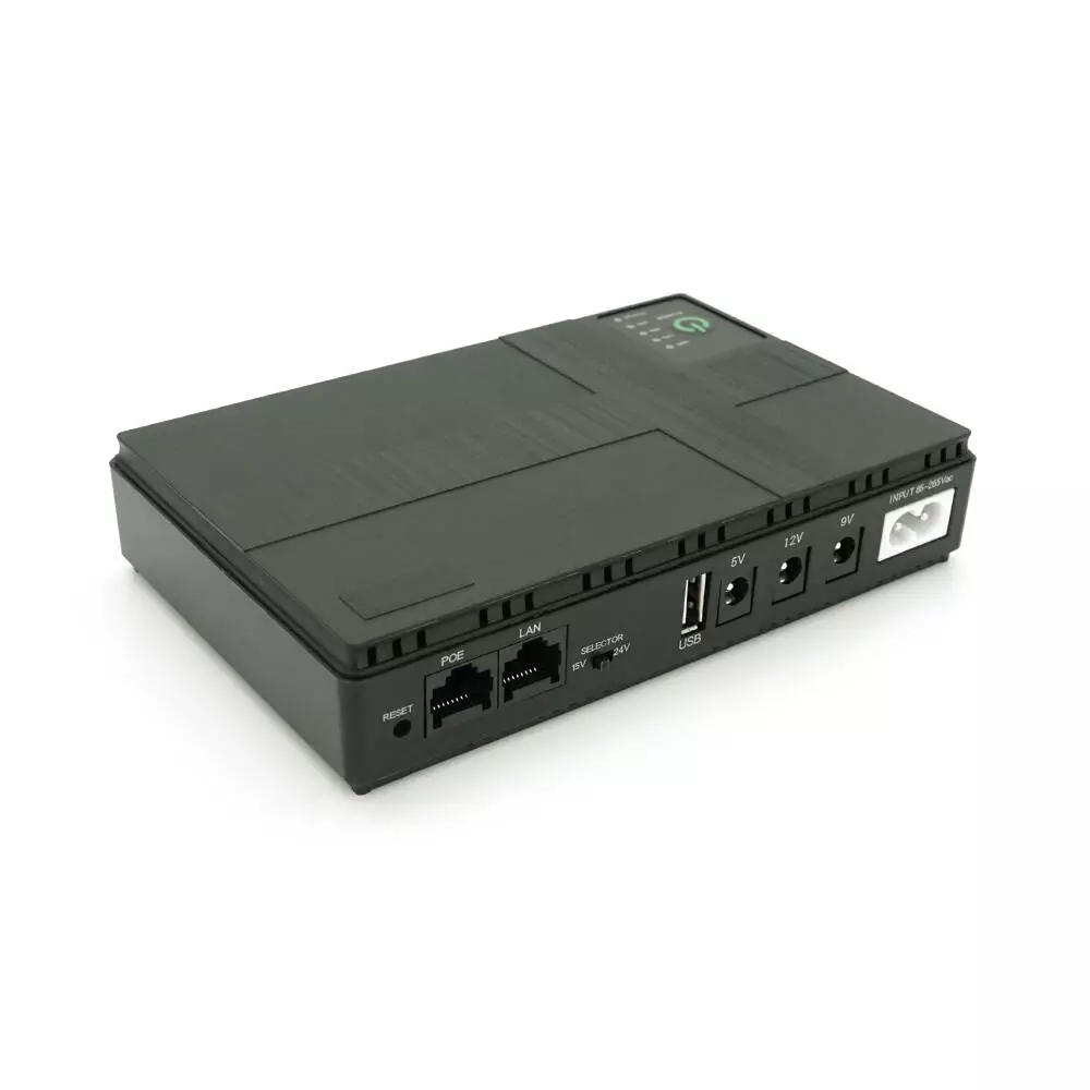 ДБЖ для роутерів/комутаторів DC1018P, 18W, Output: USB-5V, DC-5V/9V/12V, POE-15/24V, 1/2A, Li-ion 10400mAh, 160х105х32мм, 385 грам, 385 грам,