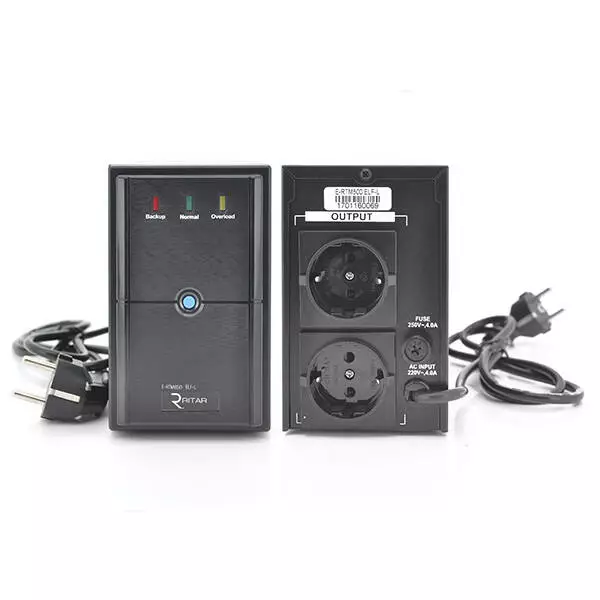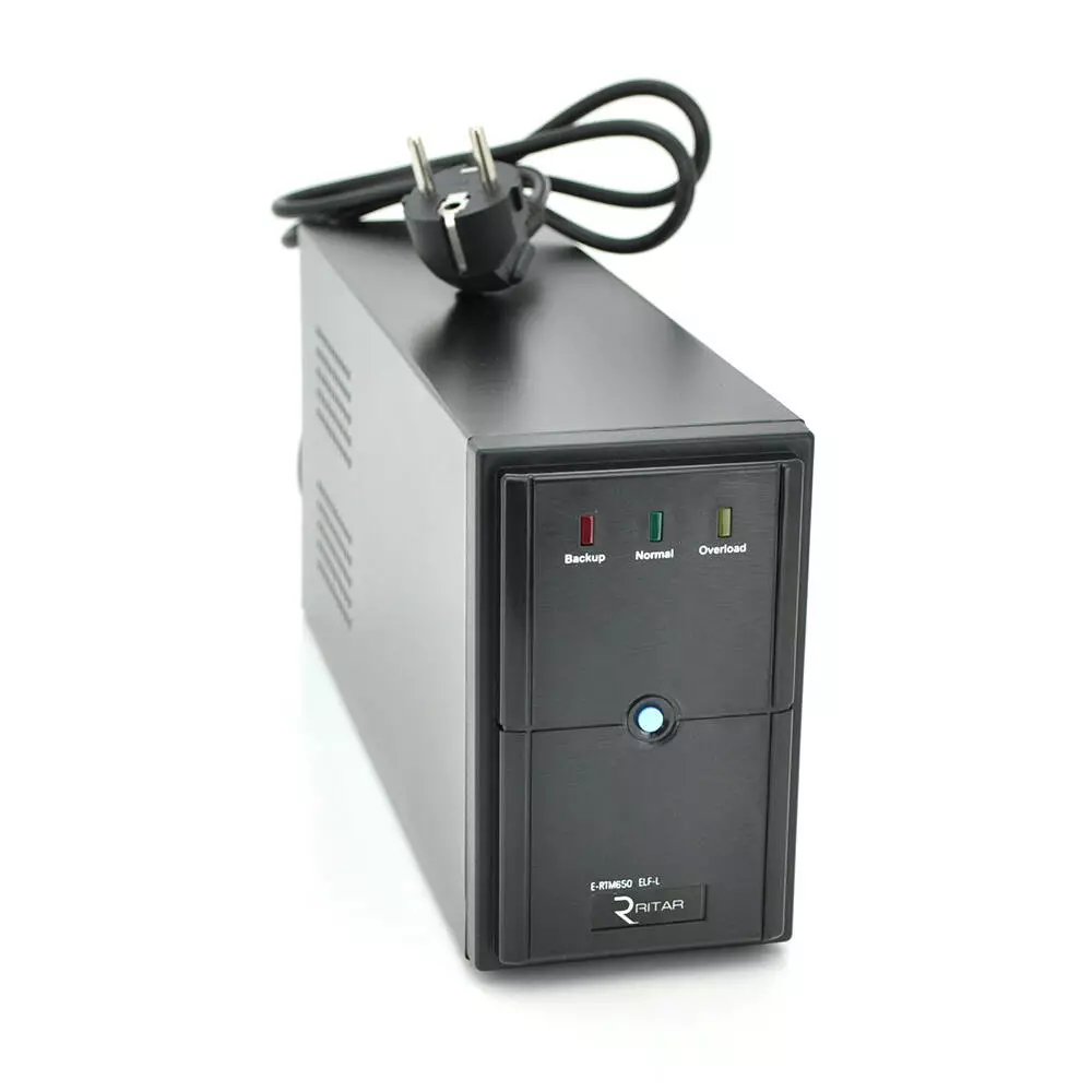 ДБЖ Ritar E-RTM650 (390W) ELF-L, LED, AVR, 2st, 2xSCHUKO socket, 1x12V7Ah, metal Case Q4 (370*130*210) 4,8 кг (310*85*140)