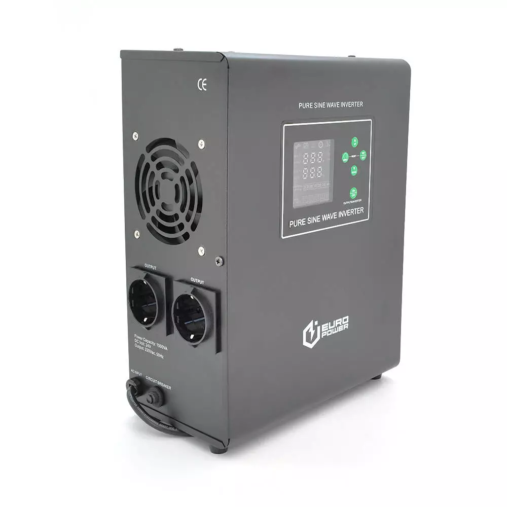 ДБЖ з правильною синусоїдою Europower EPWM-MPS-1500/24 (1050 Вт) 5/10/15/20А, під зовнішню АКБ 24В (AGM/GEL/LFP), кріплення на стіну, Q1 (420*350*230)